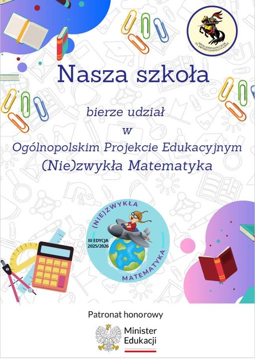 Od 15.09.2025 do 31.05.2026 na wybranych lekcjach matematyki, w ramach innowacji pedagogicznej, będzie realizowany ogólnopolski projekt edukacyjny (Nie)zwykła Matematyka.